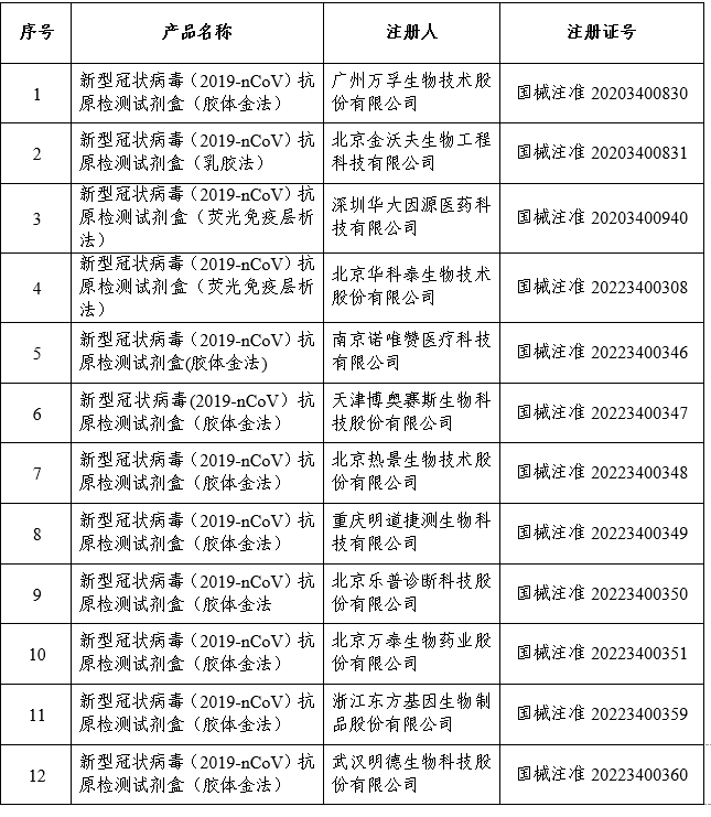 國家藥監(jiān)局已批準12個新冠病毒抗原檢測試劑